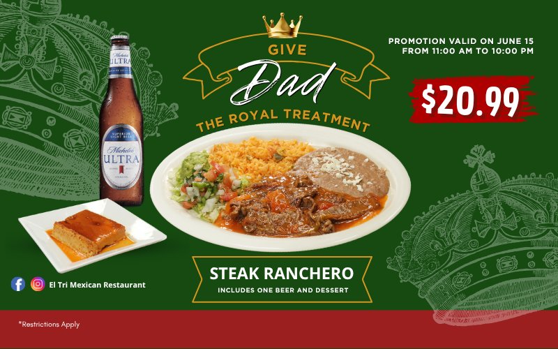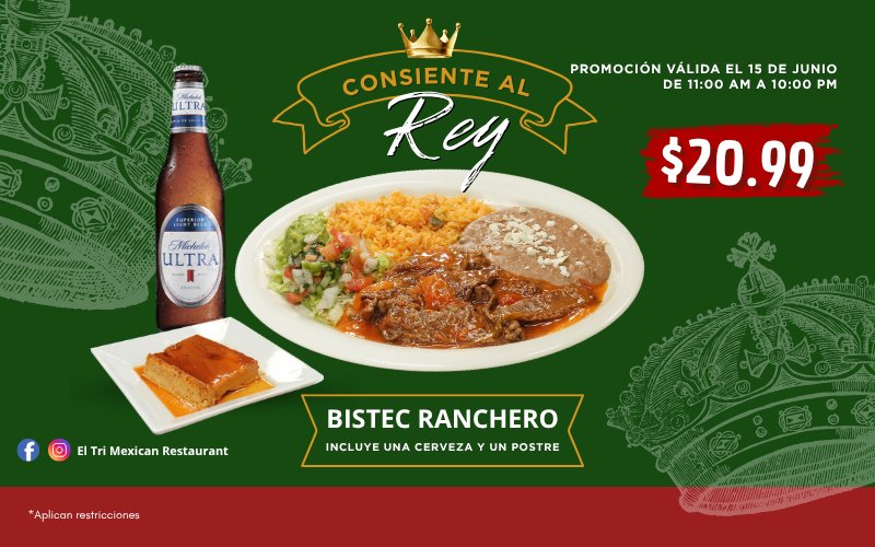 Bienvenidos a EL TRI MEXICAN, restaurante de comida mexicana, donde podrás disfrutar de los auténticos sabores de México. Nuestros platillos están preparados con ingredientes frescos y de la más alta calidad para garantizar una experiencia culinaria